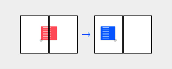 你的应用应该支持屏幕托拽,这不仅是为了兼容双屏设备,而是对于绝大多数的设备的使用情况而进行兼容,确保用户体验的一致和灵活。只不过相比于在屏幕单屏上进行托拽移动,在双屏上托拽移动,将会带来更多的可能性,并且这样也将会在双屏使用场景之下,最为重要的交互模式之一。