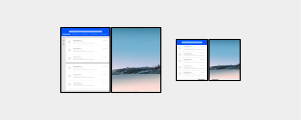 在双屏设备上,你的应用应当支持在单个屏幕上运行,也可以在双屏上运行,当一个应用在两个屏幕上显示的时候,我们称之为「跨屏」,而跨屏显示这个问题对于双屏设备而言,是至关重要的,如何显示将会带来巨大的影响。这种独特交互模式可能会解锁前所未有的使用方法。比如,有转轴和接缝的双屏设备,因为屏幕的特征而非常适合分隔并行式的生产力解决方案。