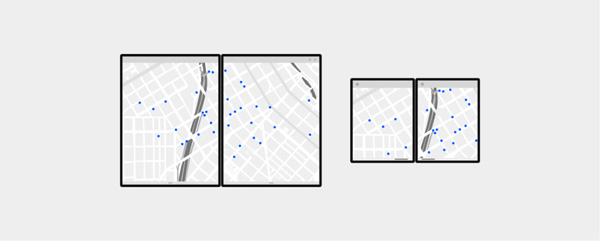 如果你的应用不作任何优化就直接在双屏设备上投放使用,接缝并不总会给用户体验带来影响。比如地图类应用,用户可以随意移动地图内容,接缝带来的割裂并不会对使用体验造成实质性的影响。在后面「扩展画布」这一节,将会对这个问题进行深入讨论。