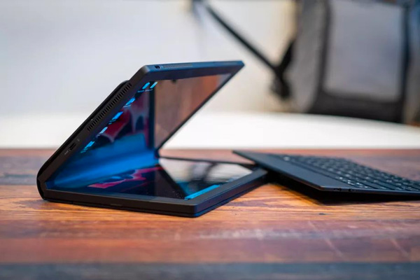 联想带来的 ThinkPad X1 Fold,是一个价格昂贵的柔性折叠屏平板电脑,它额外附带了一个蓝牙键盘。